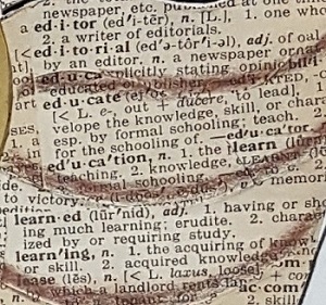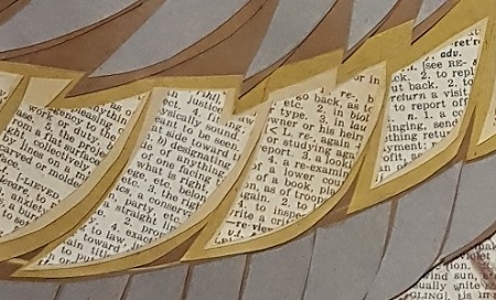 Owl in a day's work ...Bubo eruditus, the learned owl featured on the home page, comes by his wisdom naturally, with feathers crafted of card stock and pages from an old family dictionary.